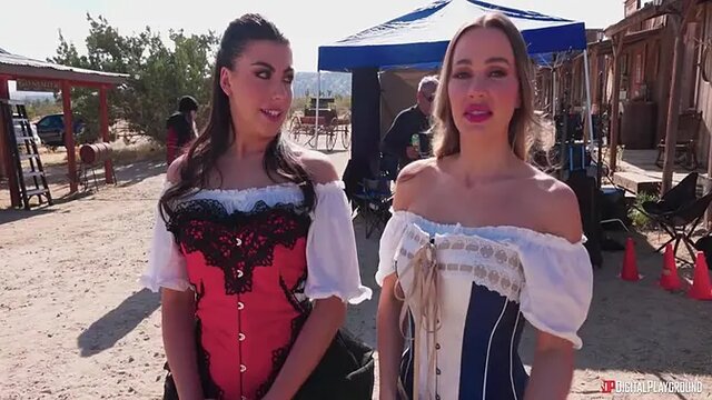 Adria Rae, the sultry brunette with big tits, is on set for Gold Diggers! She's about to get her ass pounded by a gorgeous blonde cowgirl. But first, she pleasures a redhead with her talented mouth and ass. Watch as the inked beauty takes it all in, feeling the cowboy's cock deep inside her.