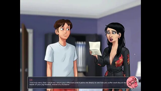 Jazziuus Summertime Saga #129 follows a mature woman with a voluptuous figure. She's an old MILF who loves to touch and play with her big boobs. Watch as she masturbates and enjoys her own body.