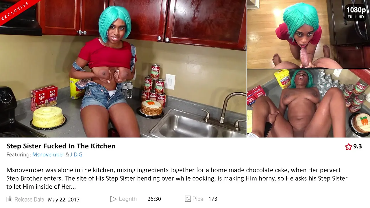 This kinky stepsister with huge natural tits gets her big boobs bouncing as she's bent over and fucked doggystyle in the kitchen. She's standing up with her back arched, taking all of it. The dark-haired slut gets a creampie and can't stop moaning.