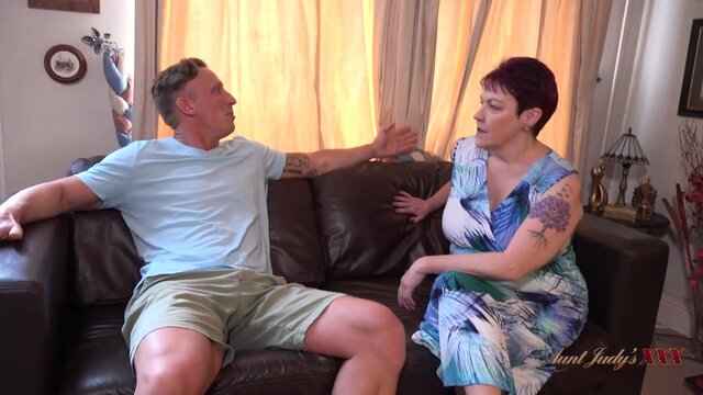 Sexy British mature MILF Layla Bird applies for a housekeeping job, but the interview quickly turns into a sexy session with the younger boss. She showcases her busty mature assets, teasing and seducing him until he can't resist her mature big tits. The milf pantyhose-clad temptress humps him deep, giving him an hot scene.