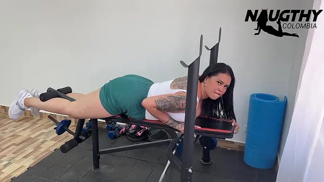 Horny MILF masturbates in the gym when no one is there